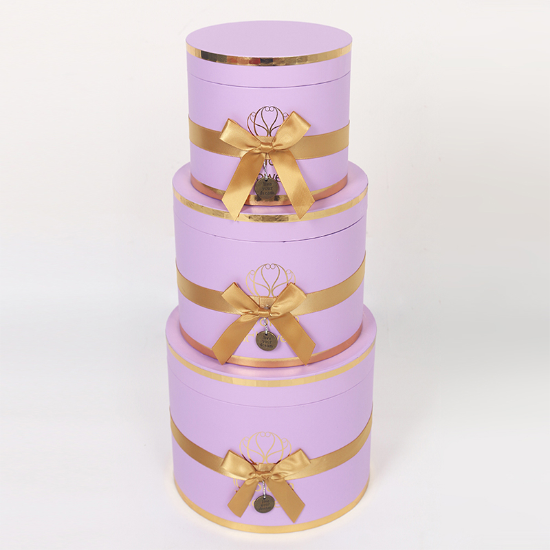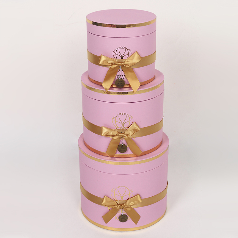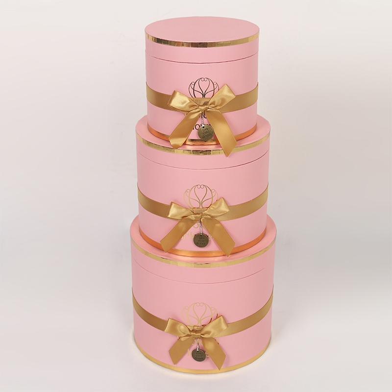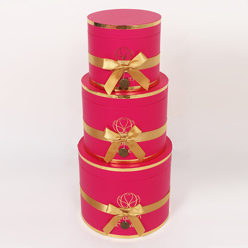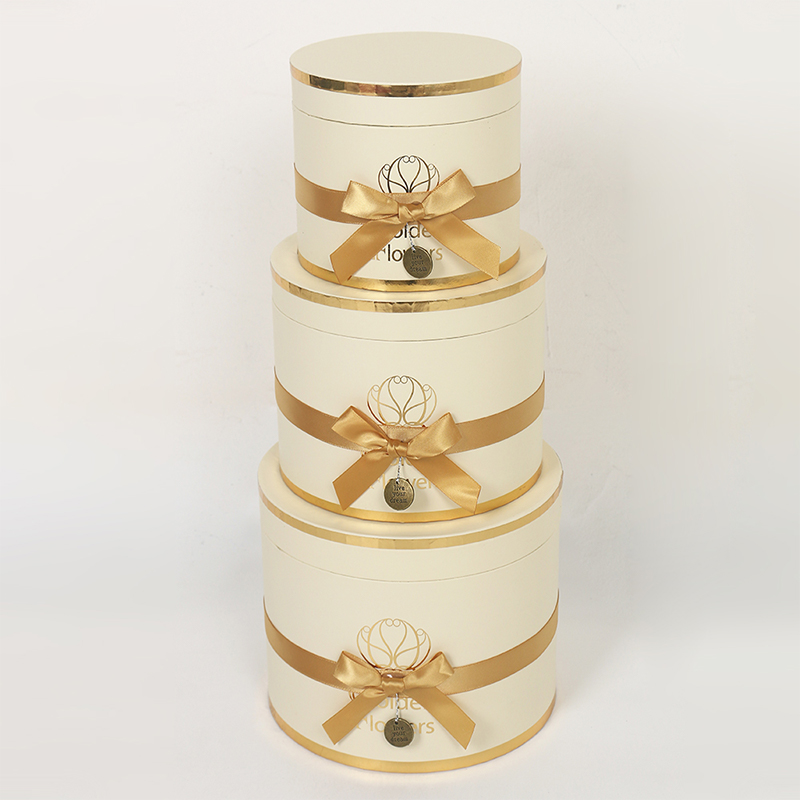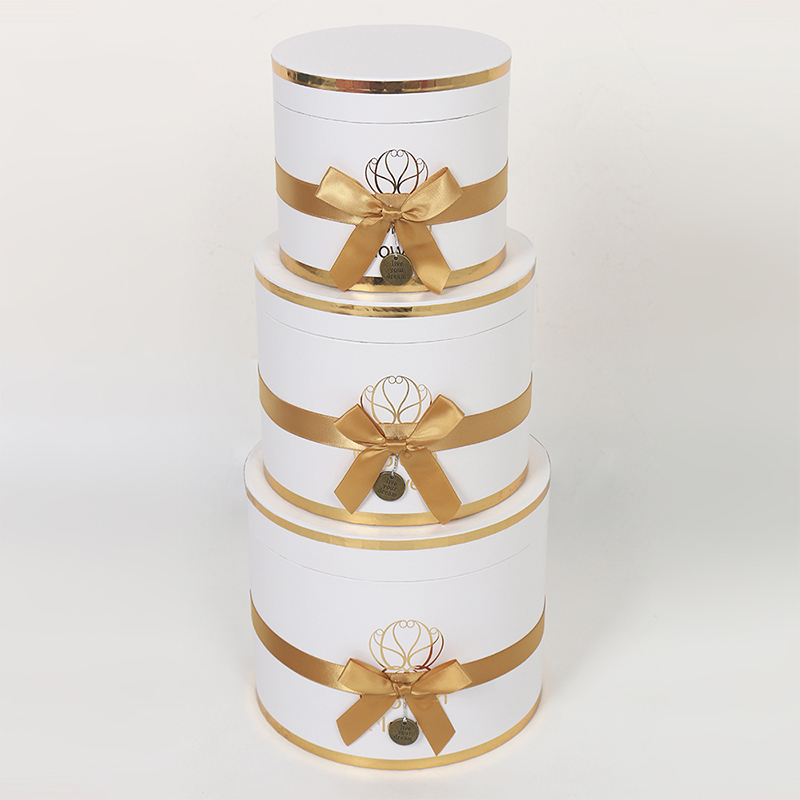 This multi-layered cylindrical gift box is a premium choice for wedding and floral packaging, made from recyclable cardboard for both environmental friendliness and durability. The surface features a UV-coated matte finish, providing a delicate touch, scratch resistance, and easy cleaning. Paired with ribbon embellishments, it exudes an elegant and ceremonial feel.