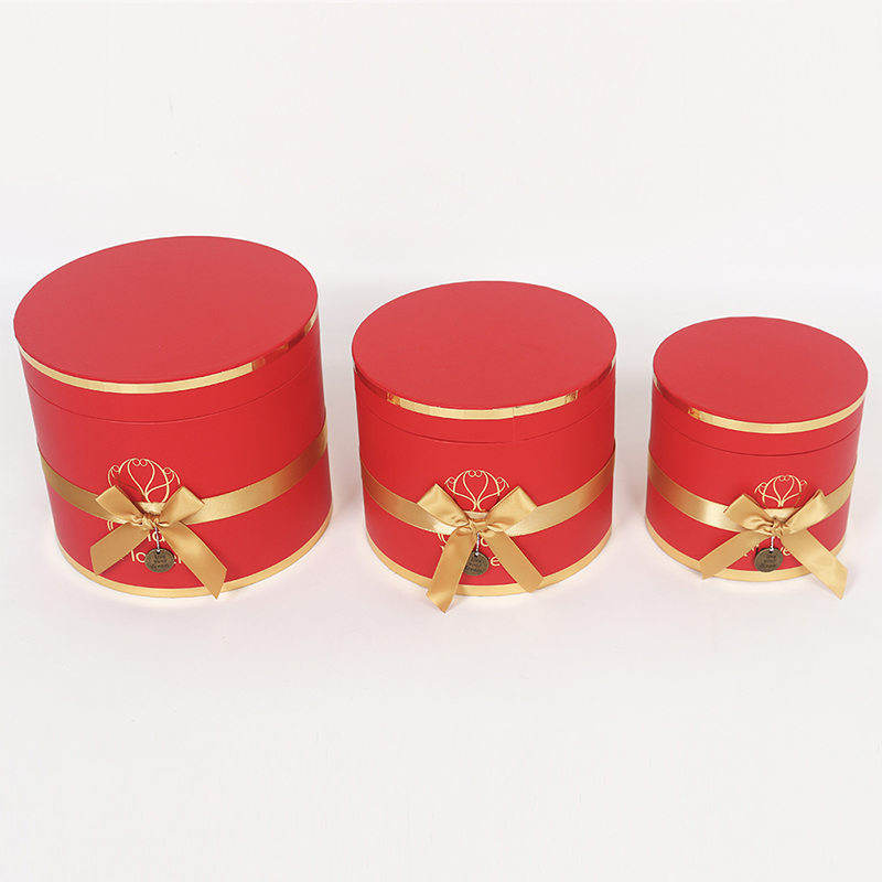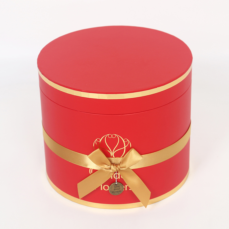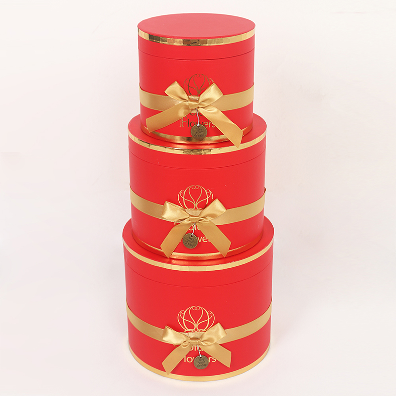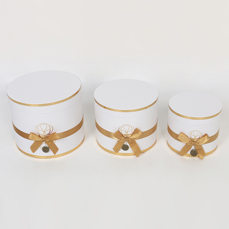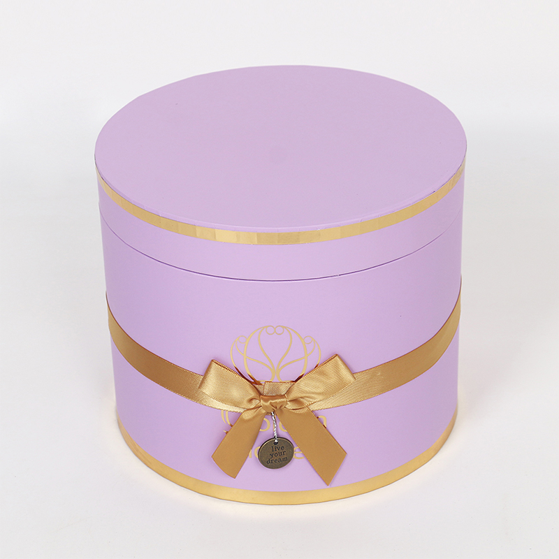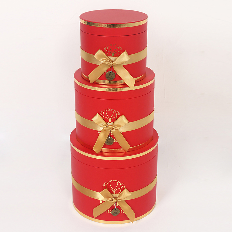 This multi-layered cylindrical gift box is a premium choice for wedding and floral packaging, made from recyclable cardboard for both environmental friendliness and durability. The surface features a UV-coated matte finish, providing a delicate touch, scratch resistance, and easy cleaning. Paired with ribbon embellishments, it exudes an elegant and ceremonial feel.