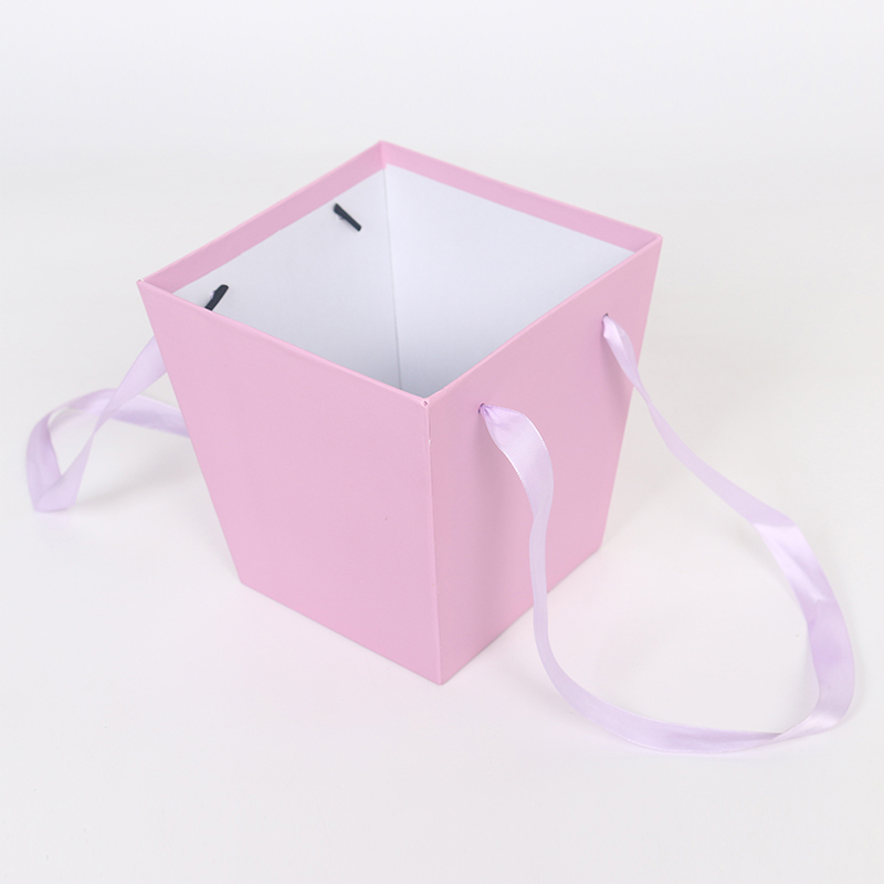This portable flower gift box is an exquisite choice for floral packaging, using recycled gray cardboard and coated paper as base materials, balancing environmental friendliness and structural strength. It's suitable for bouquets, gifts, and other occasions.
