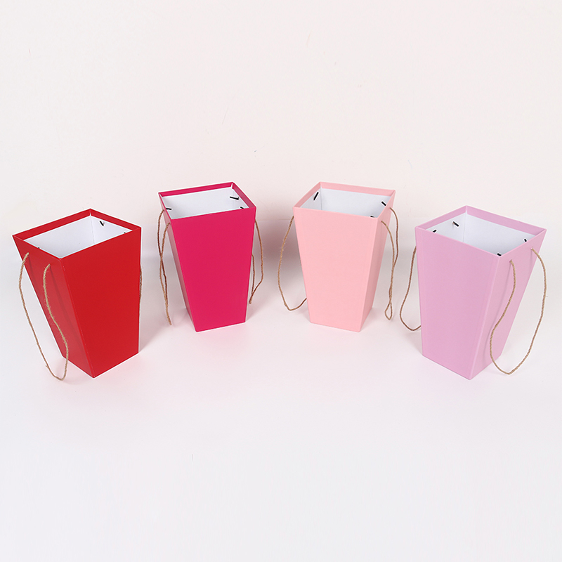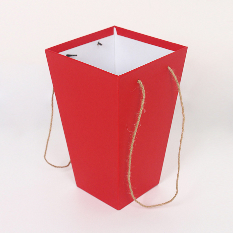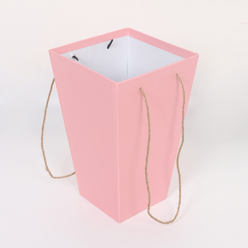 This deep, trapezoidal flower gift box creates a distinctive floral packaging experience with its extended depth and natural texture. Unlike conventional shallow trapezoidal boxes, it features a deeper structure with a wider top and narrower base. This shape retains the advantage of a wide opening for easy display while the deeper box accommodates longer stems (such as single long-stemmed roses or small bouquets). The narrower base also provides greater stability.
