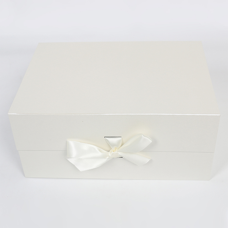 The box features a combination of glossy lamination, UV coating, and embossing: the glossy lamination enhances surface texture and water resistance, the UV coating strengthens durability, and the embossing adds tactile depth, resulting in a simple yet sophisticated visual effect. A matching satin ribbon further enhances its elegance.