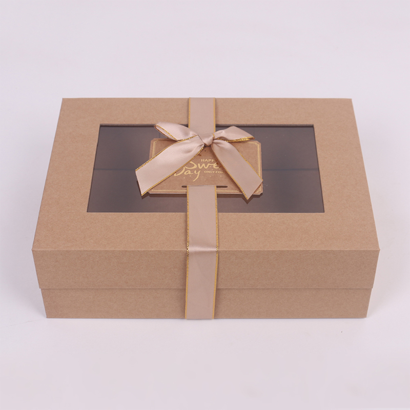 This gift box uses eco-friendly and recyclable kraft paper-laminated cardboard as its base material, combining natural texture with durability, making it a high-quality choice for gifting occasions such as birthdays and weddings. The box body can be customized with embossing, and features a matte lamination finish, providing both scratch resistance and durability while presenting a luxurious, vintage look and feel, suitable for various gift packaging styles.