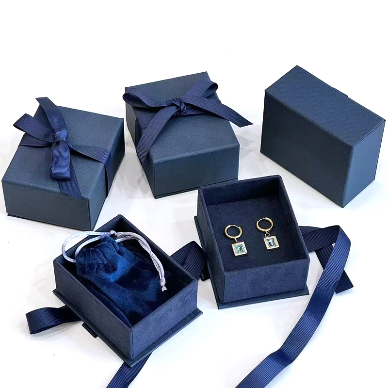 The SHJGB-04 is a top-and-bottom jewelry gift box that exudes classic and luxurious appeal. Its deep, elegant navy blue hue, combined with a finely textured faux leather exterior, delivers a sophisticated and prestigious visual impression. Inside, the box is lined with plush faux suede fabric, offering a velvety-soft touch that cradles jewelry with care. The sturdy two-part structure ensures smooth operation and reliable protection, with interior layouts customizable for rings, earrings, or necklaces. Fully customizable with brand-specific finishes and eco-friendly material options, this box serves as an impeccable vessel to convey craftsmanship and brand value.