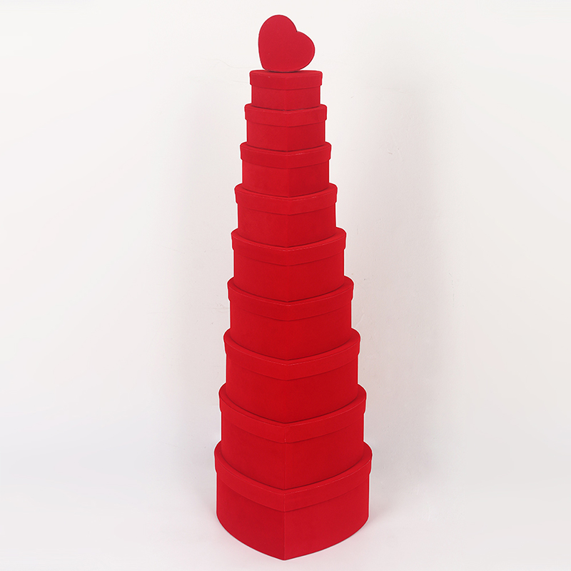 This ten-piece heart-shaped plush gift box set features a soft, velvety texture and a gradient size combination, creating a versatile gift-giving solution suitable for various occasions.